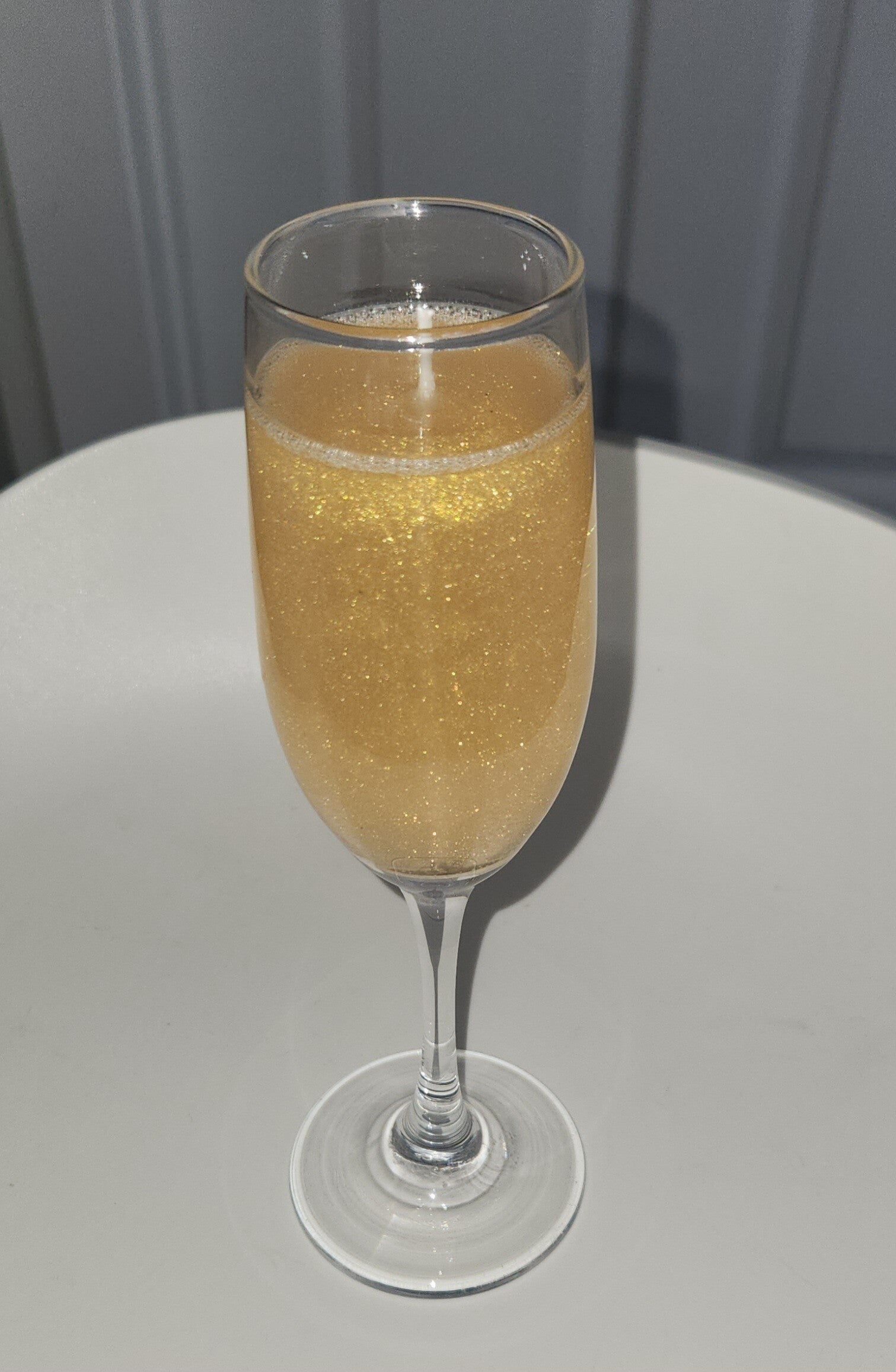 Una vela con gel que hace referencia a la champaña y la magia de la vela